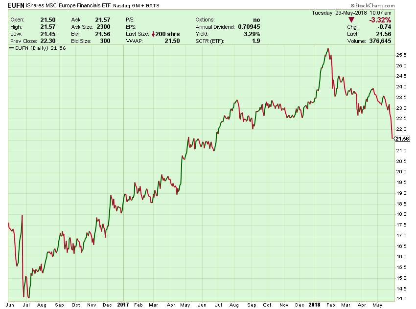 This morning cooler heads seem to be prevailing and we are seeing signs of a bottom fish mentality developing. A strong supportive statement from the European Central bank, backed by Germany would go a long way to calm the nerves. Notwithstanding this bounce, the European markets, especially their basket case banks, will be off limits as the drama in Italy plays out over the next six months.