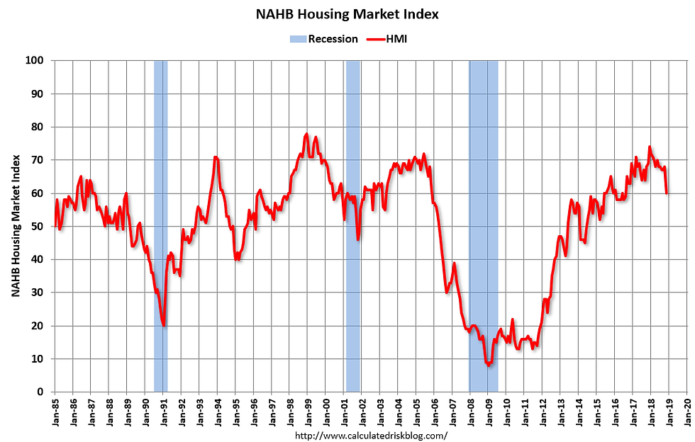 The U.S. National Association of Home Builders reported its survey of expectations for the next six months and it was sharply lower. It would seem that Home Builders, those folks most closely aligned with consumer confidence, are losing their nerve about 2019. The market took it badly. The S&P ended the day at the lows. But what stocks took most of the drubbing? Not housing stocks. It was FAANGS that were indiscriminately dumped. Growth mania has collapsed in a chorus of recrimination about privacy issues and slowing sales.