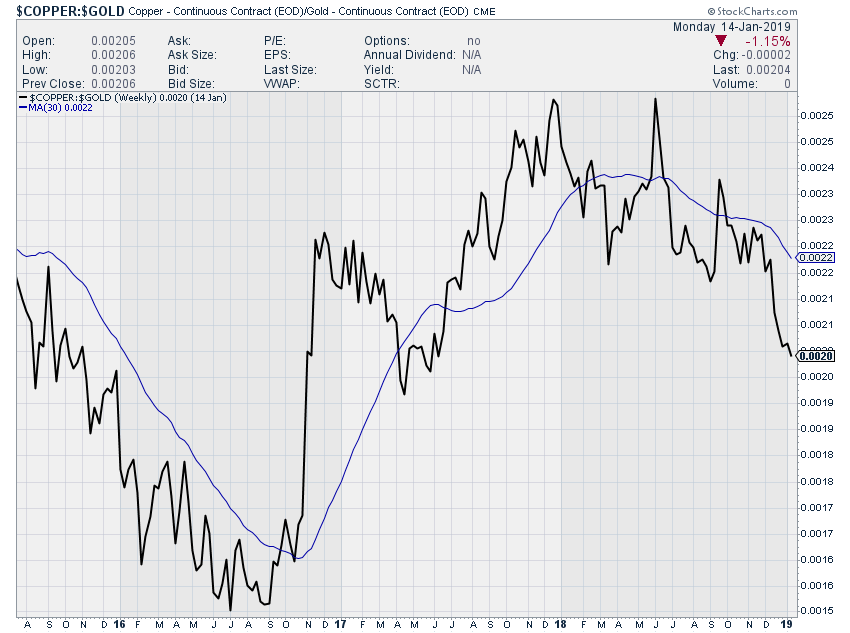 Most disappointing has been the action of copper vs gold. The risk-on players aren't giving us much support here. Judging from the chart below, are a long way from seeing a confirmation of a supportive global growth environment that could meaningfully extend the cyclical expansion. Without that critically important rotation, any market recovery in the near term is likely to prove ephemeral.