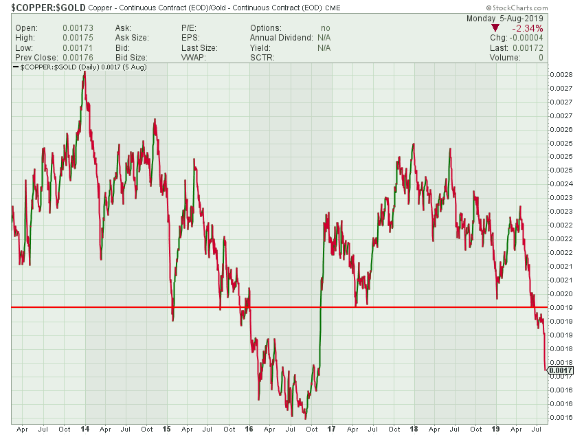This is clear visual evidence of the pushing on a string fallacy in current monetary policy. The Fed is firmly behind the deflation curve.I will not beta-up until Powell admits defeat and lower the funds rate to something with a "1" handle. Four cuts in the Fed Funds rate is not yet in many forecasts. A renormalization of the front end of the yield curve with a Ten Year at 1.50% would do the trick. Dr Copper, my favourite market strategist, has just said so.